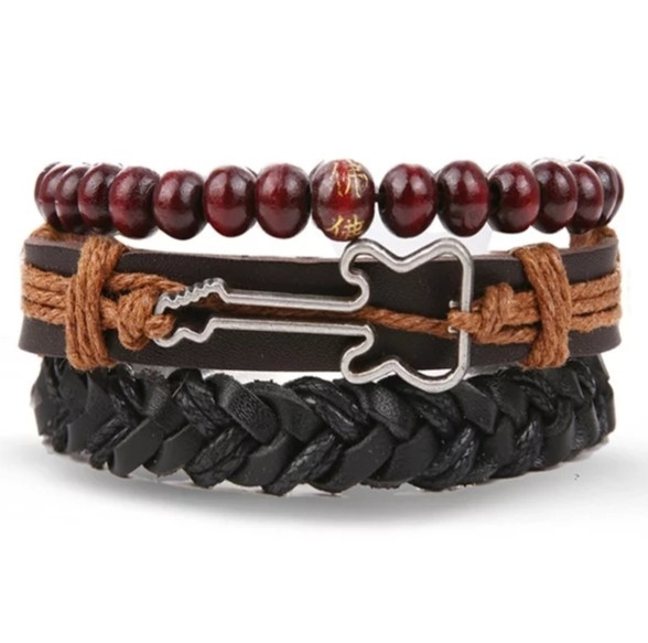 Набір шкіряних чоловічих браслетів — чоловічий браслет "Гітара"